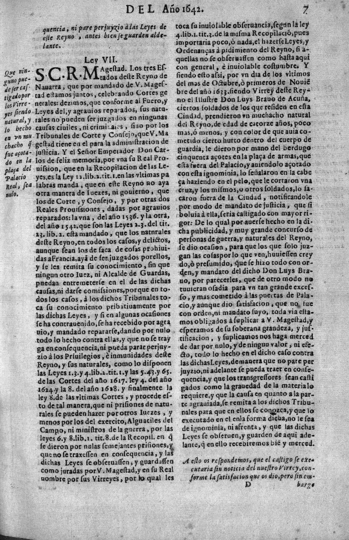 | Izenburua: | Quaderno de las leyes, ordenancas, provisiones, y agravios reparados, á suplicacion de los tres Estados de este Reyno de Nauarra, en las Cortes del año de 1642, por la Magestad Real del Rey Don Phelipe Sexto de este nombre nuestro señor. Y en su nombre por el excelentissimo Señor Don Sebastian Suarez de Mendoça.. |