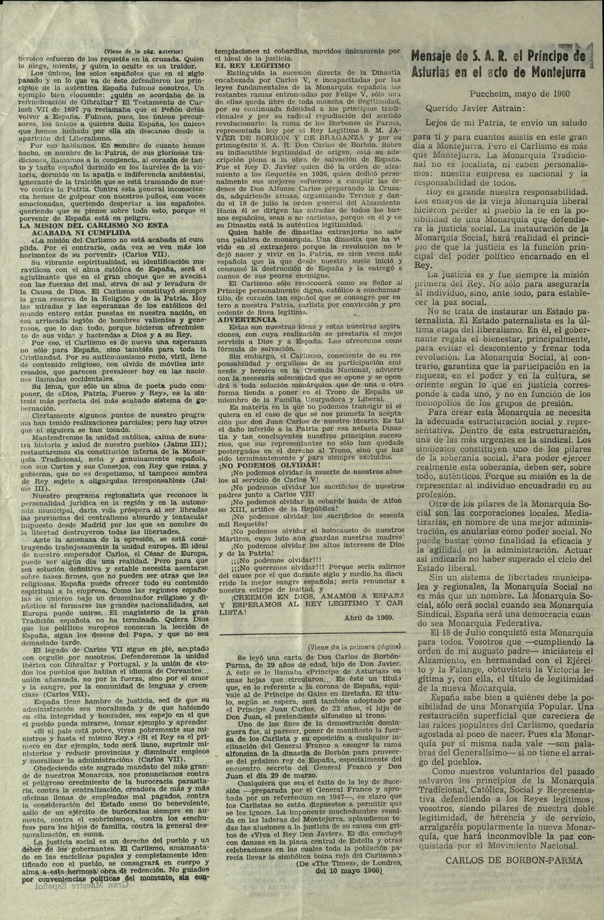 Otros títulos: Información mensual : boletín interno del Carlismo