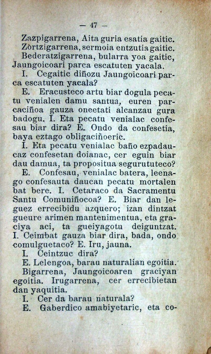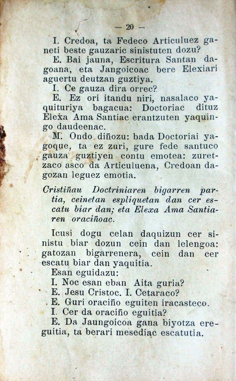 | Título: | Cristiñau doctrina / Aita Gaspar Astetec erderaz escribidua ; eta guero Gabriel Menendez de Luarcac gauza asco erantzita atera eban ; orain eusquerarara hiyortuta urteiten dau arguitara cerbait gueyagoturic Laudiyoco Abade Jaunen encarguz eta costuz, diar dirian baiyezcoacaz. |