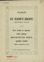 Título: Aita Zulaibar'en goralbanez egindako yayak / bere bizitza ta egintzaz erriko zelayan Errotaetxe'tar Iñaki'k egindako itzaldia 1926'ko dagonilla'ren 15'an