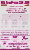 Izenburua: XLIV Gran Premio San Juan [Material grafikoa] : trofeo euskaldun : aficionados 1 y 2 : viernes, 24 de junio a las 9,30 de la mañana : organiza, C.C. Mondragonés