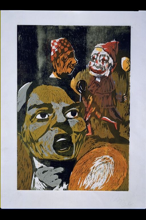 | Resumen: | Exposición Técnica: Xilografía Materia-soporte: Cartulina Kilikis, cómicos o cabezudos con bochincha para asustar a los niños. Ángulo inferior izquierdo P. A. (Prueba de autor). Ángulo inferior derecho: MB./86 (Firma ilegible). |