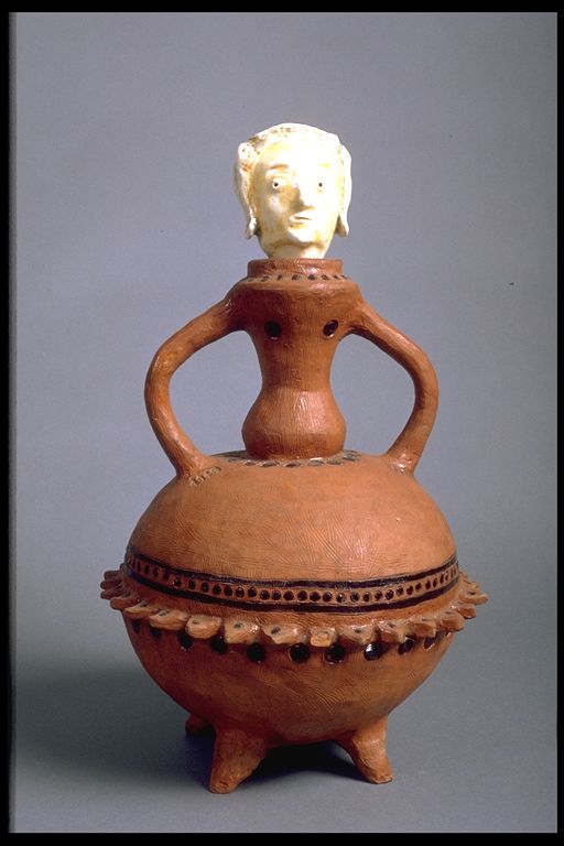 | Resumen: | Exposición Técnica: Cerámica Materia-soporte: Barro cocido Recipiente de barro con forma de mujer en jarras, cabeza de cerámica esmaltada y vidriada en blanco actuando como tapón. Seguramente procede de alguna exposición de cerámica o artesanía. |