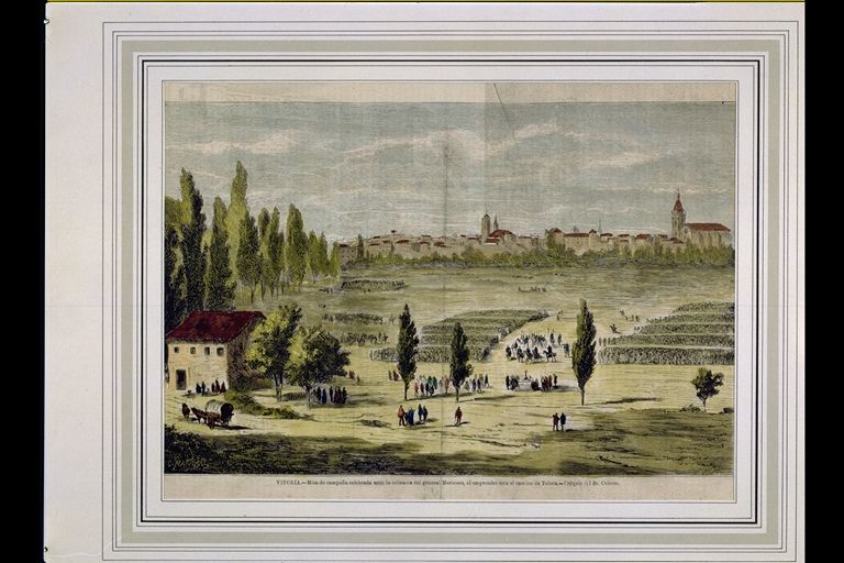 Celebrada ante la columna del General Moriones, al emprender el camino a Tolosa. Croquis del Señor Cubero.