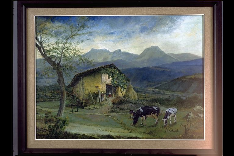 | Resumen: | Exposición Técnica: Óleo Materia-soporte: Lienzo Paisaje de un caserío en el que se aprecian montones de heno. Frente a él, se encuentran dos vacas comiendo, al fondo, montañas. Firmado en ángulo inferior derecho. |