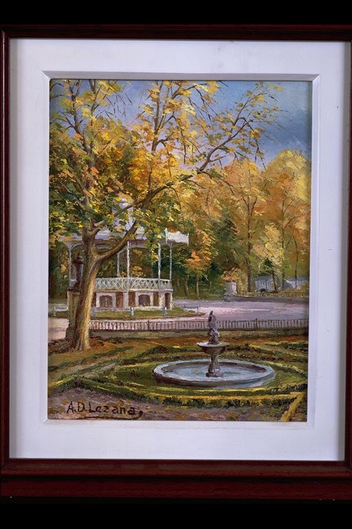 | Resumen: | Exposición Técnica: Óleo Materia-soporte: Tablex-Lienzo Vista del quiosco de La Florida, en primer término aparece una fuente circular en el jardín. Firmado en ángulo inferior izquierdo. |