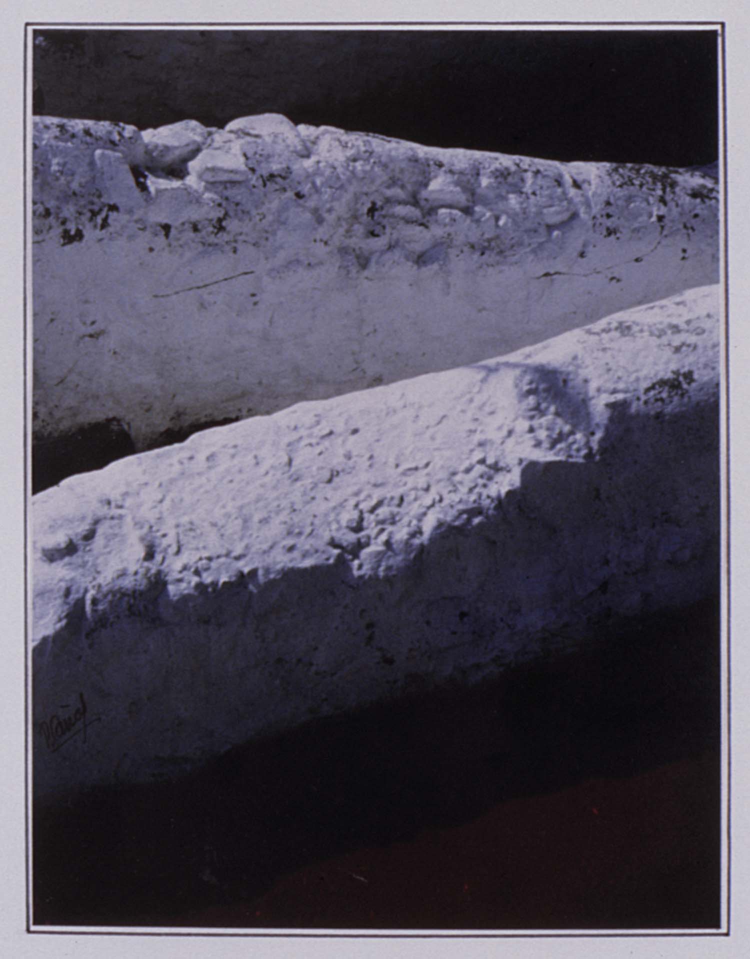 | Resumen: | Exposición Técnica: Fotografía color Materia-soporte: Papel Paredes de piedra blancas con sombras o tejados con nieve. |