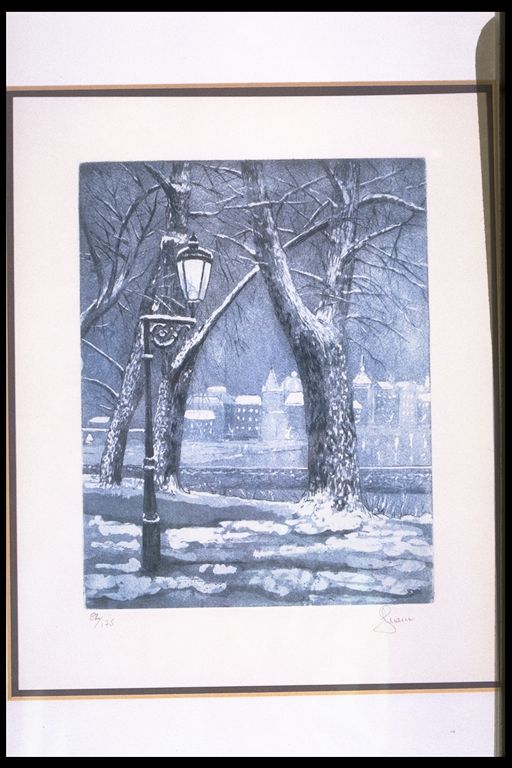 | Resumen: | Técnica: Grabado Material-soporte: Papel Árboles y farola en paisaje urbano y nevado. Firmado en ángulo inferior derecho. |