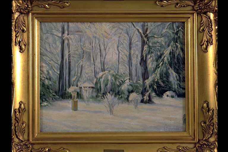 Vista de los jardines de la Florida nevados.