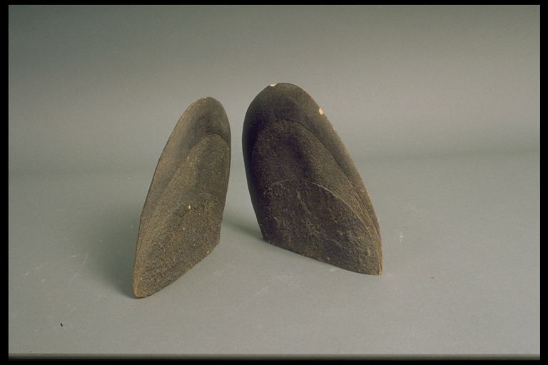 Escultura abstracta, conjunto de dos semicírculos apoyados por los laterales.