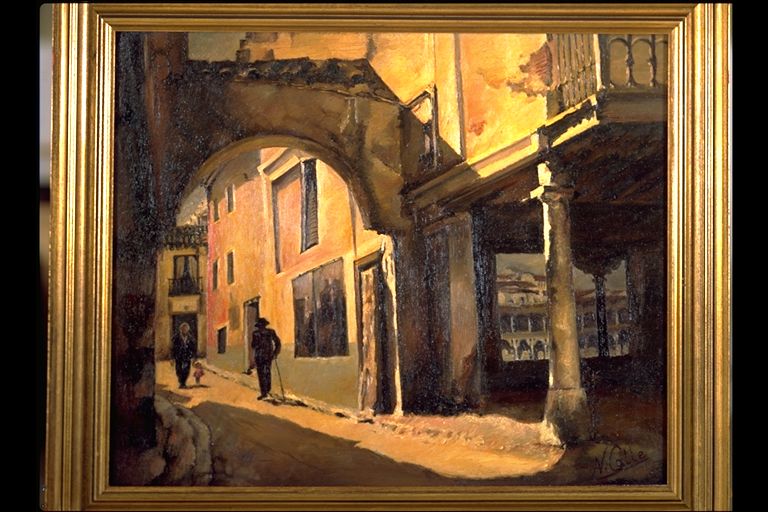 | Resumen: | Exposición Técnica: Óleo Materia-soporte: Lienzo Calle de un pueblo donde se observa una arcada de entrada y el principio de un porche de columnas. Firmado en ángulo inferior derecho. |