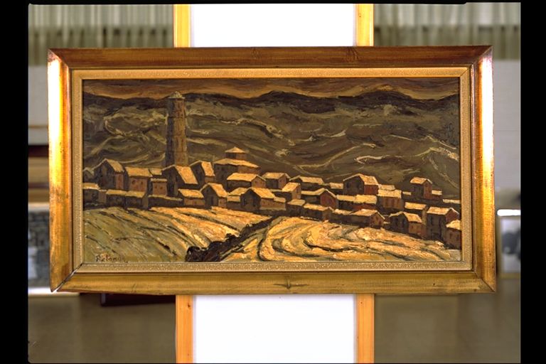 | Resumen: | Técnica: Óleo Materia-soporte: Tabla Pueblo alargado con casas apiñadas, tejados nevados y alta torre. Firmado en ángulo inferior izquierdo. |