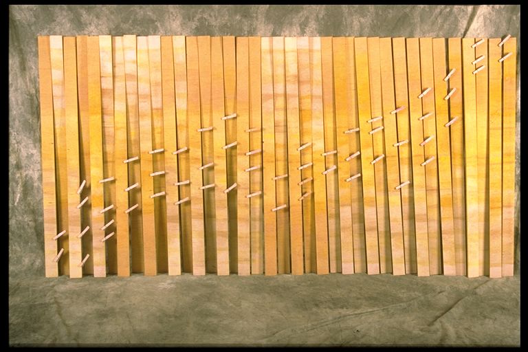 | Resumen: | Técnica: Instalación Materia-soporte: Madera Instalación compuesta por varias tablas verticales pintadas en amarillos y pinzas rojas. |