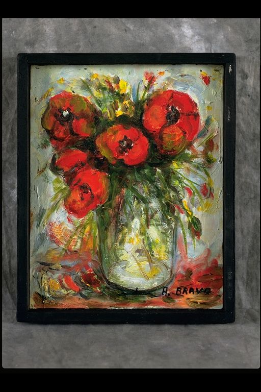 | Resumen: | Exposición Técnica: Óleo Materia-soporte: Lienzo Jarrón de cristal con flores rojas. Firmado en ángulo inferior derecho. |