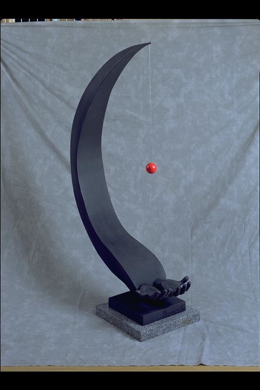 | Resumen: | Técnica: Forja-Soldadura Materia-soporte: Chapa de hierro Fecha de ejecución: 1998 Media luna con manos y bola roja colgante. Firmada en el frente de la base. |