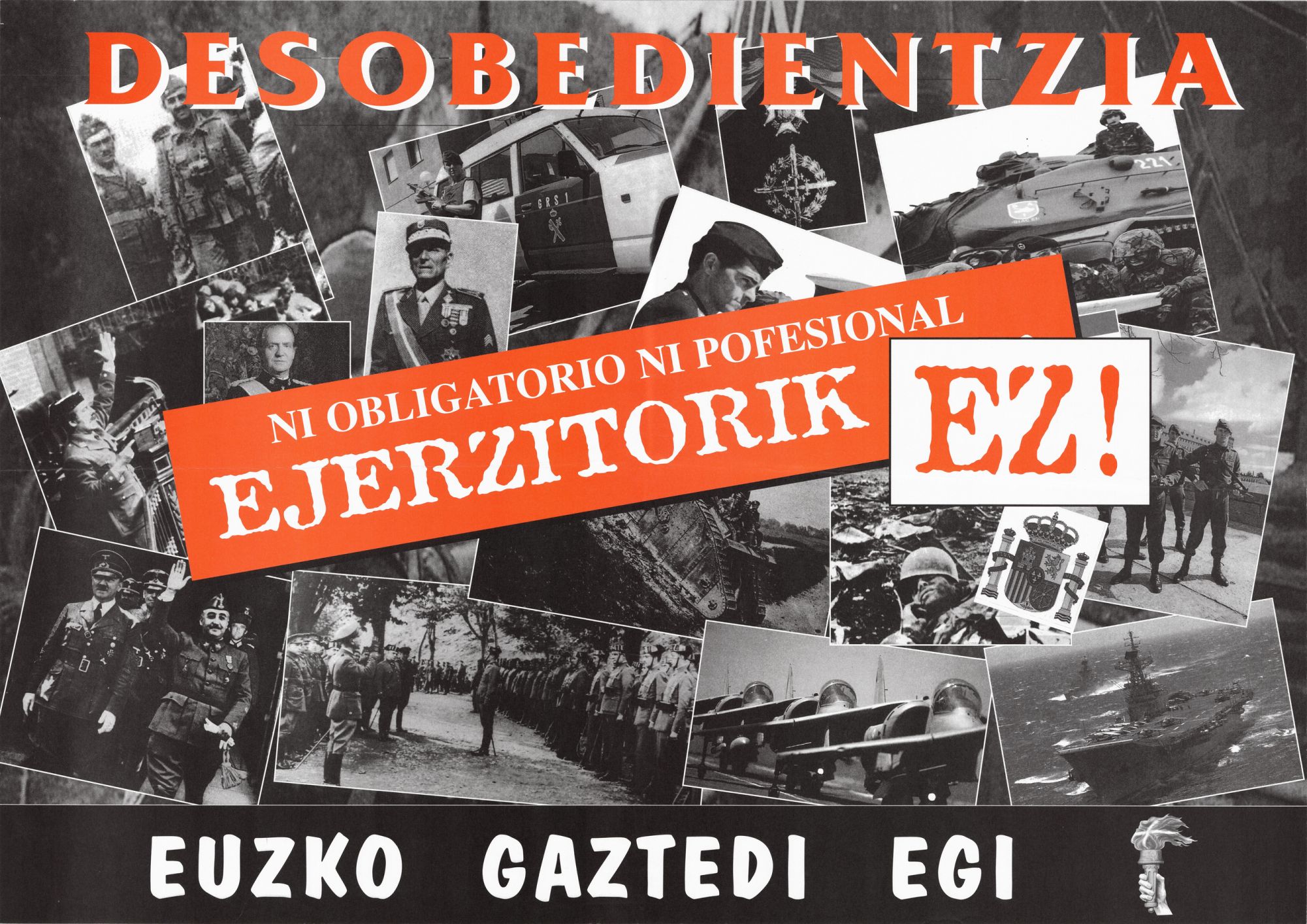 Título: Desobedientzia [Material gráfico] : ni obligatorio ni profesional : ejerzitorik ez! : Eusko Gaztedi EGI