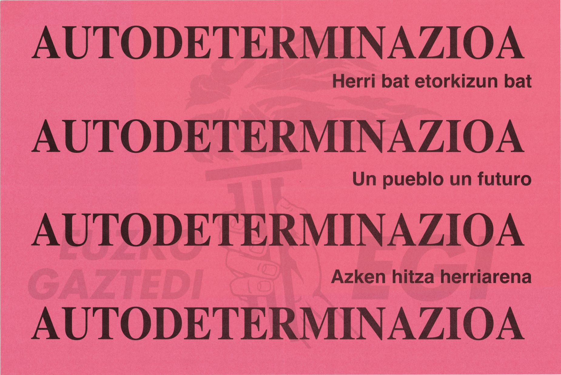 Título: Autodeterminazioa [Material gráfico] : herri bat etorkizun bat = un pueblo un futuro : azken hitza herriarena
