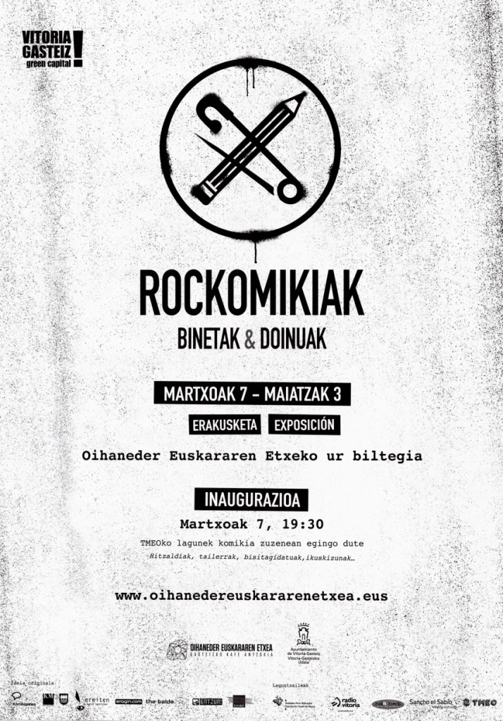 Título: Rockomikiak : binetak & doinuak : martxoak 7-maiatzak 3 : erakusketa-exposición Oihaneder Euskararen Etxeko ur biltegia : inaugurazioa martxoak 7, 19:30...