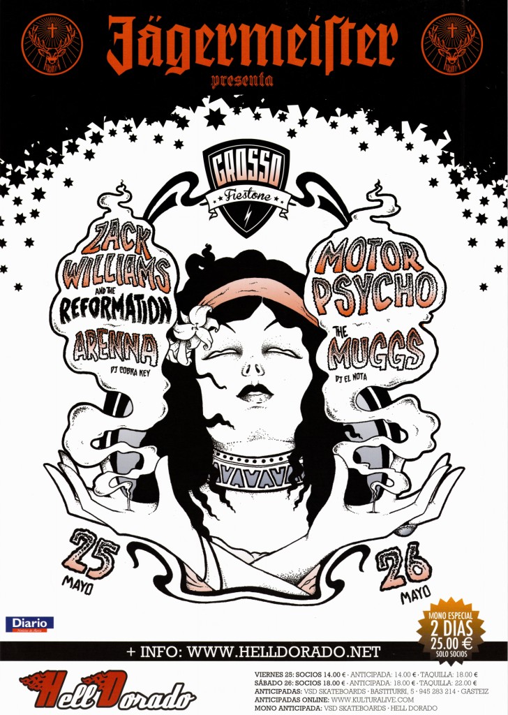 Título: Grossso fiestone [Material gráfico] : Zack Williams and The Reformation, Arenna, Motor Psycho, The Muggs / Paula Murillas