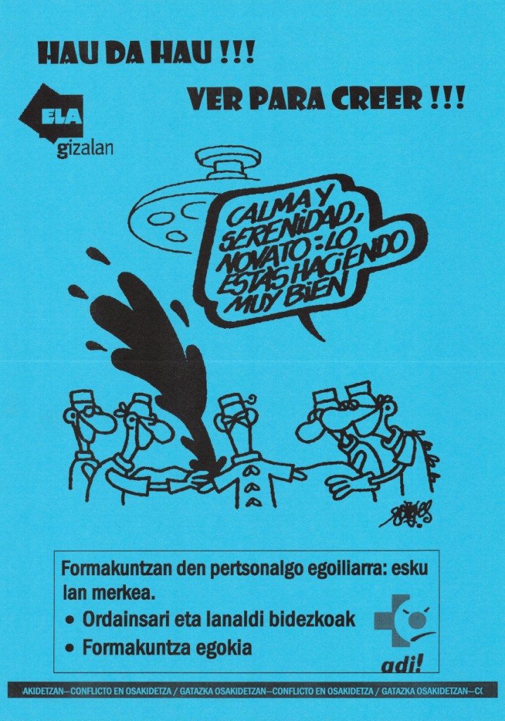 | Título: | Hau da Hau!!! [Material gráfico] = Ver para creer!!! : conflicto en Osakidetza : formakuntzan den pertsonalgo egoiliarra : esku lan merkea : ordainsari eta lanaldi bidezkoak, formakuntza egokia |