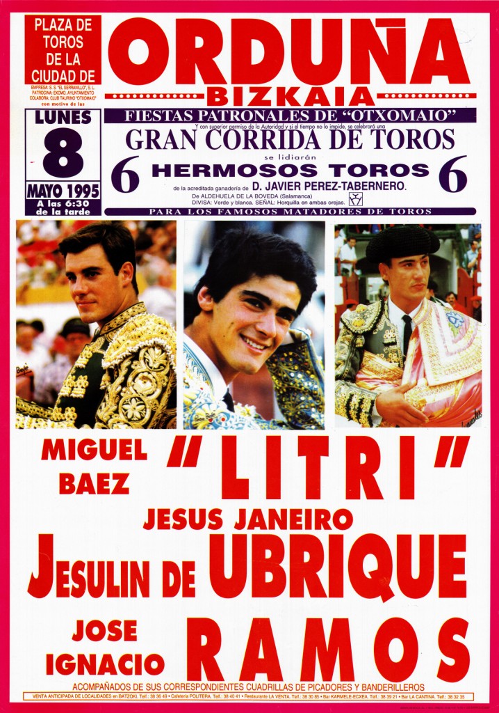 Título: Orduña, Bizkaia [Material gráfico] fiestas patronales de "Otxomaio" : lunes 8 mayo 1995 : gran corrida de toros : 6 hermosos toros 6