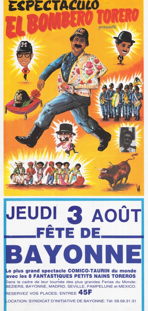 Título: Espectáculo El Bombero Torero presenta [Material gráfico] : jeudi 3 août, fête de Bayonne, grand espectacle comico-taurin : 8 fantastiques petits nains torero
