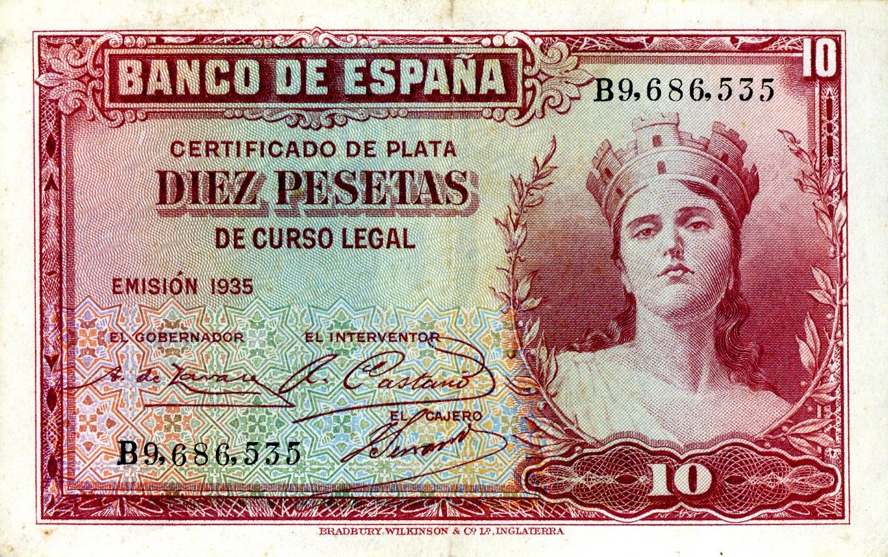 | Otros títulos: | Papel moneda Billete de diez pesetas |