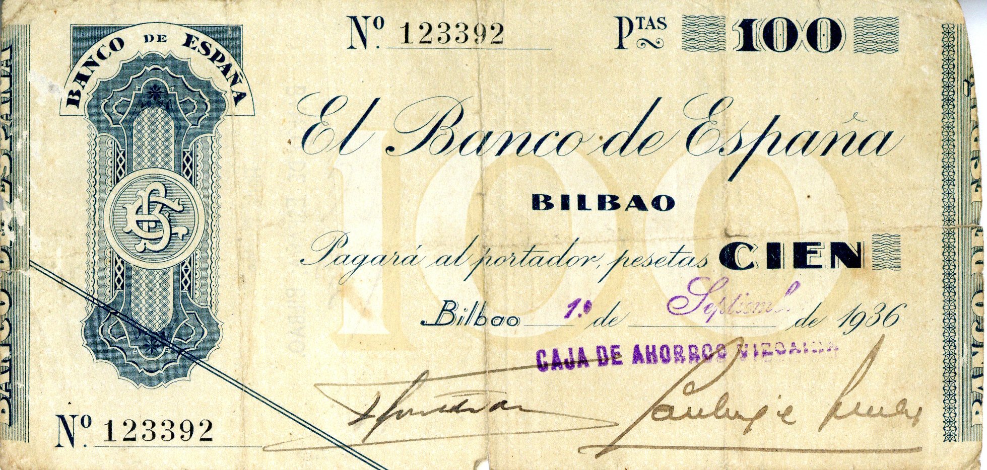 | Otros títulos: | Papel moneda Talón de cien pesetas |
