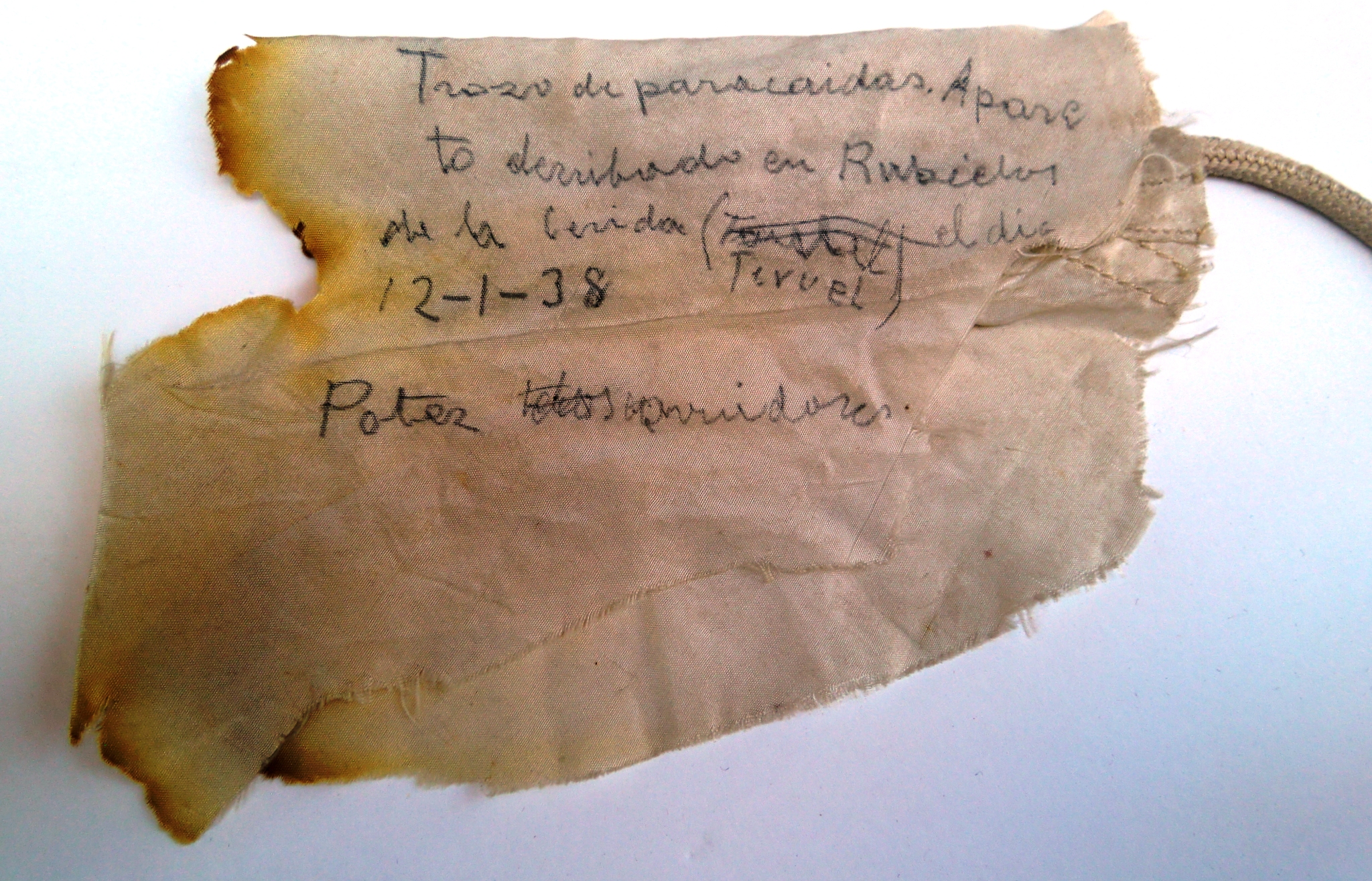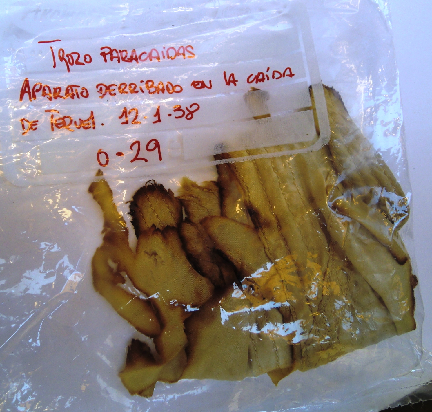 Resumen: Fragmentos de paracaídas de un avión derribado durante la batalla de Teruel en la localidad de Rubielos de la Cerida (TeruelI el 12 de enero de 1938.