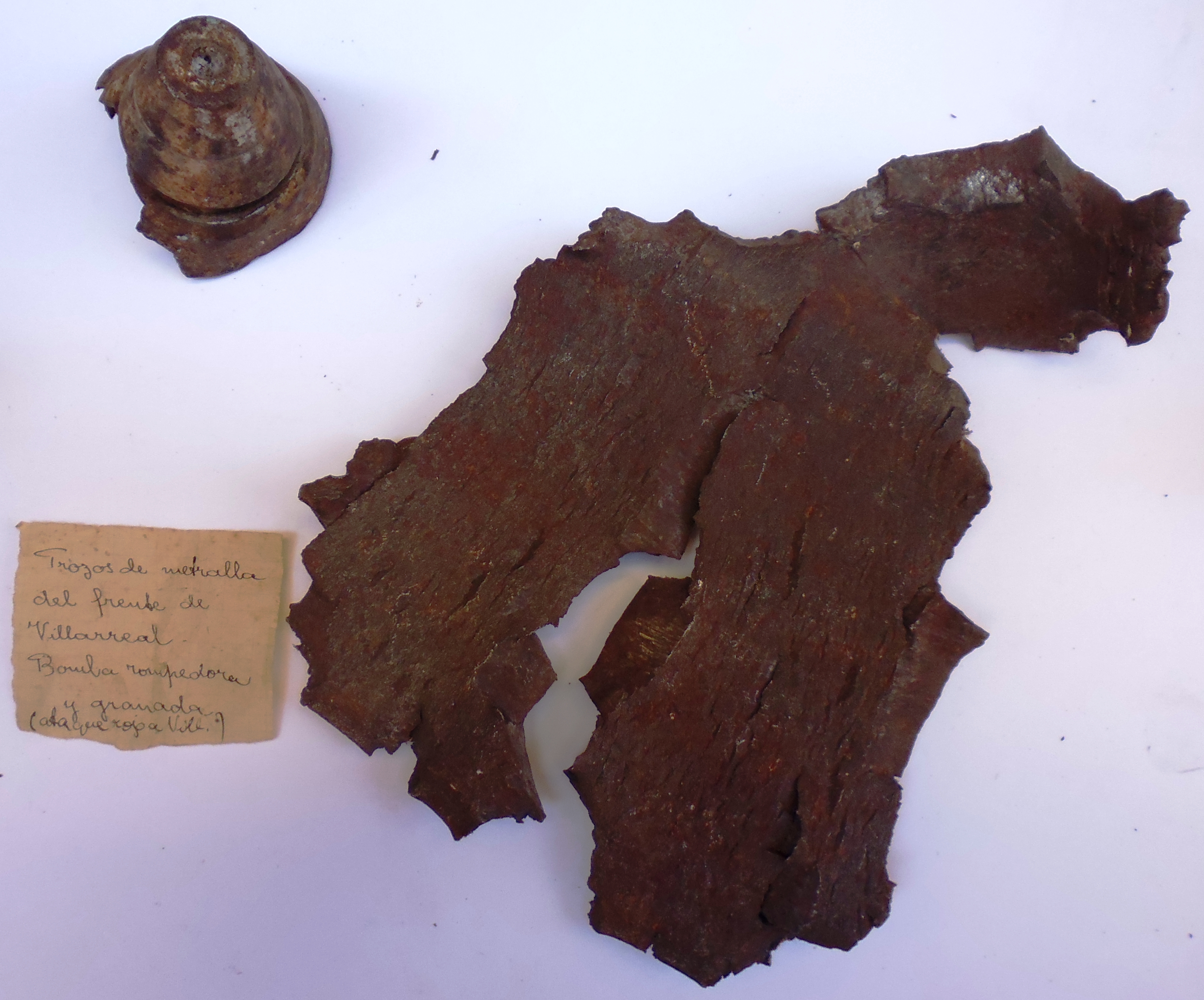 Resumen: Espoleta de artillería y fragmento de proyectil disparados contra la localidad de Villarreal de Álava por las fuerzas republicanas durante la ofensiva contra Vitoria. Diciembre 1936.