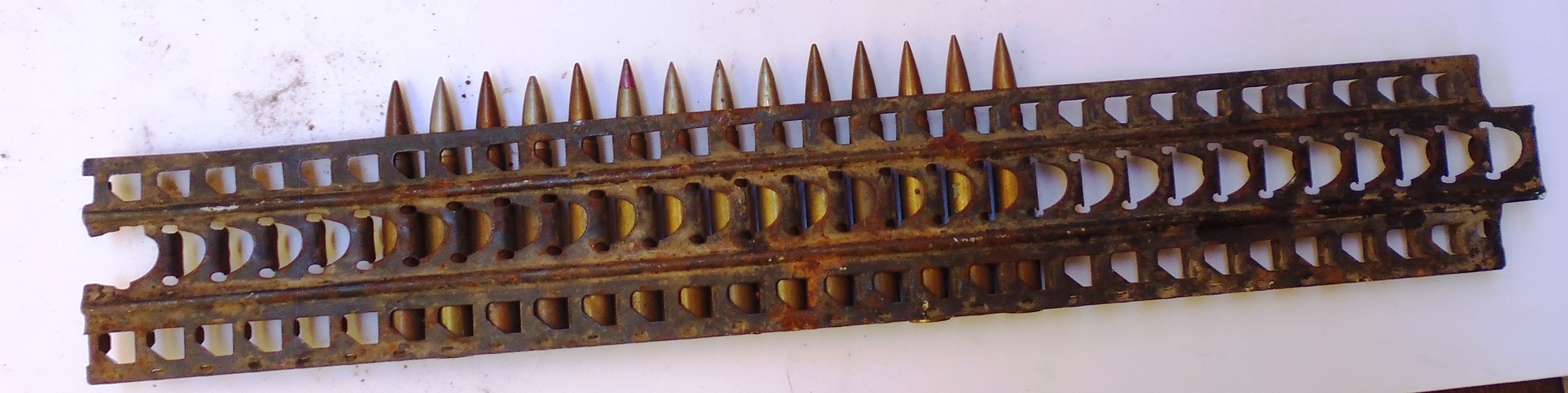 | Resumen: | Peine de ametralladora Hotchkiss francesa. La ametralladora Hotchkiss calibre 7 mm, fabricada bajo licencia en la Fábrica de Armas de Oviedo y declarada reglamentaria en el ejército español, fue ampliamente empleada por ambos bandos durante la Guerra Civil Española (1936-1939).